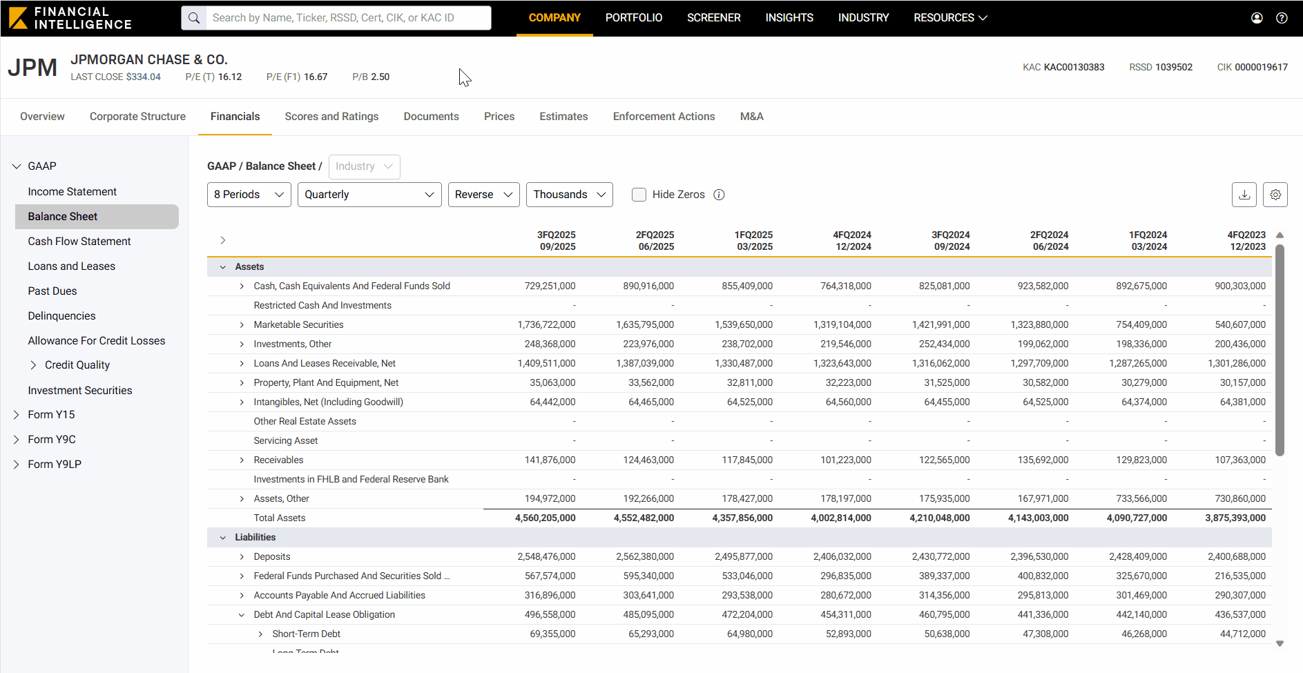 Ahead of upcoming 4FQ 2025 bank earnings, KFI has launched its latest platform enhancement, enabling users to view credit quality history pertaining to bank loan portfolios. This data presents reported credit quality information based on institutions’ internal risk-grading framework, as disclosed under U.S. Generally Accepted Accounting Principles (GAAP). The underlying categorizations reflect management’s assessment of borrower credit risk and repayment capacity as of the reporting date and are a key input in estimating expected credit losses. Loans are sorted into descending regulatory risk grades, ranging from pass—denoting that a loan is performing as expected with no material credit concerns—to loss, where a loan is considered uncollectable and should be charged off.