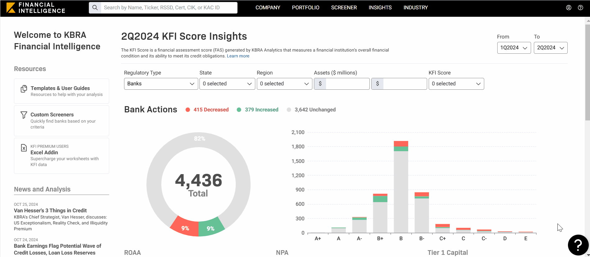 KFI will continue to monitor the election’s impact on U.S. banks. Our Excel Add-in Screener Ratio templates, available for BHCs, commercial banks, and credit unions, can be utilized to detail the capital adequacy of individual institutions’ CET1 capital ratios, tangible common equity ratios, and more. Request a demo with KFI to access our full library of tables and templates.