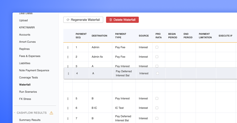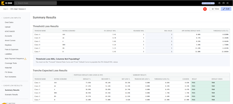 K-SIM simplifies every step of CLO and CLO-like transaction setup. Upload your portfolio file, generate a waterfall, and configure deal mechanics with purpose-built features that reduce setup time so you can focus on performance and analysis.